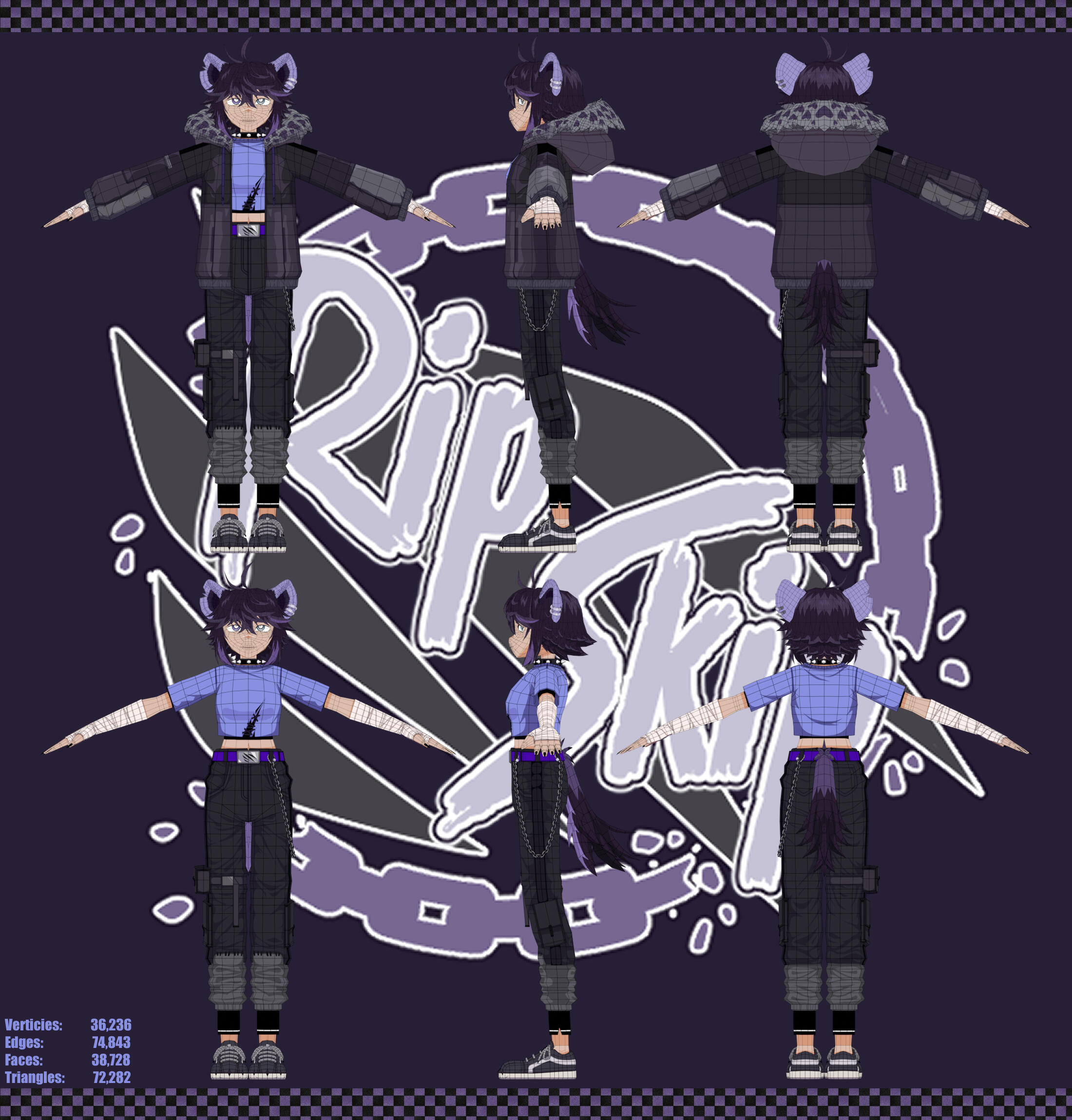 Hello! I'm Spiral and I'm a 2D/3D artist. I specialize in low to mid poly character models, but also work on scenes and environments! I have an associates degree in 3D Animation, though I haven't made much use of it yet. I also stream on twitch!